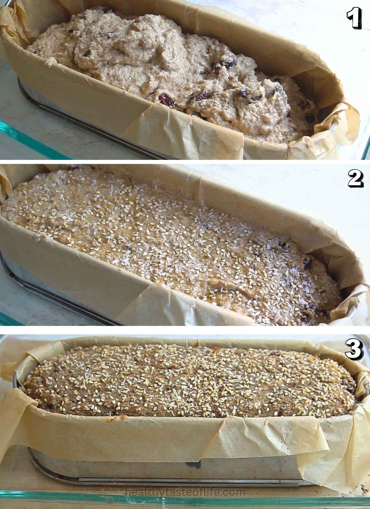 - Pour the batter into the prepared loaf pan. If desired, sprinkle the top generously with maple sugar, cinnamon or seeds.